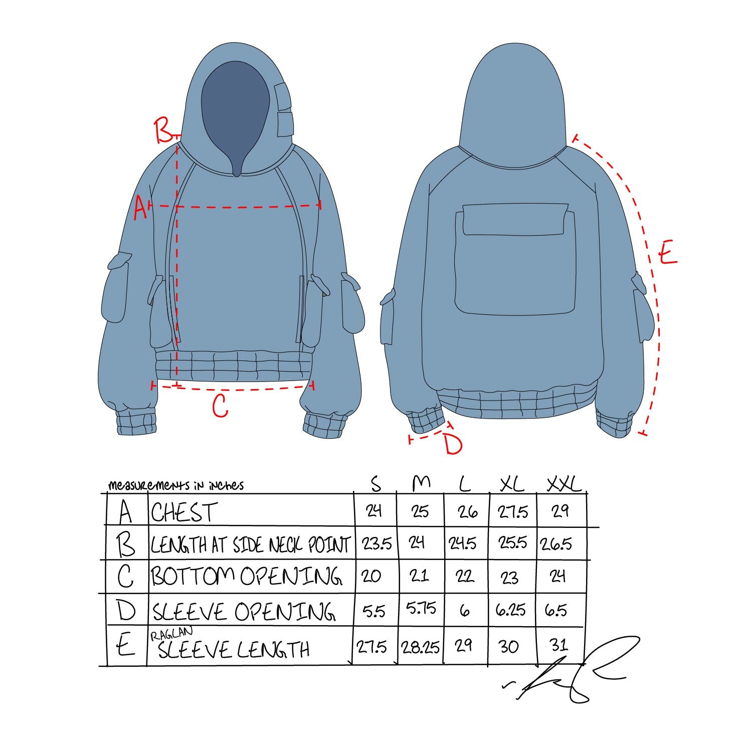 Model is 6'1" 155lbs & wearing a size large. Size up for oversized look. Boxy. Feels like your favorite hoodie, french terry cotton that's hella soft. Drop shoulders, waist band sits at or right above hips