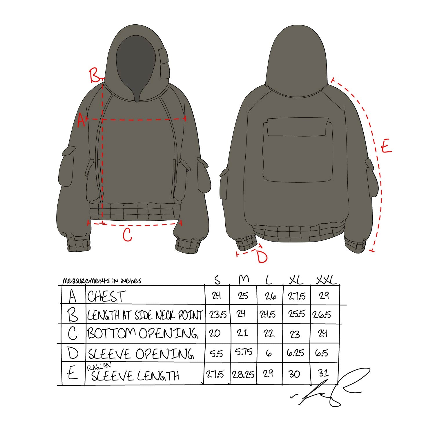 Model is 6'1" 155lbs & wearing a size large. Size up for oversized look. Boxy. Feels like your favorite hoodie, french terry cotton that's hella soft. Drop shoulders, waist band sits at or right above hips